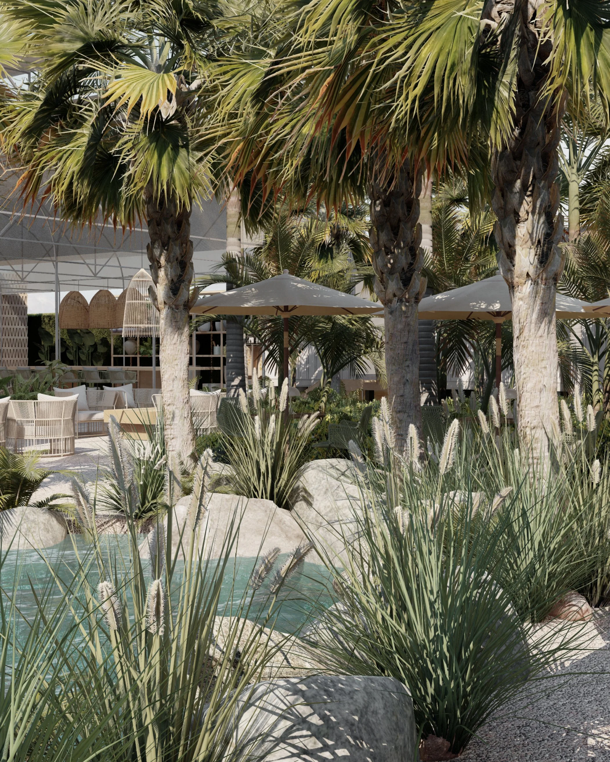 El resultado es un lugar donde la arquitectura se entrelaza con la naturaleza, invitando a relajarse y desconectarse en una atmósfera de calma y serenidad.